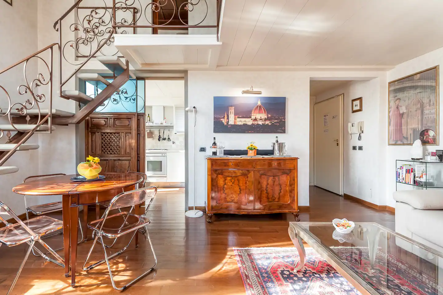 L’appartamento è in una strada viva ma tranquilla allo stesso tempo. A pochi metri ci sono un supermercato e un ortolano con prodotti freschi. Non mancano locali alla moda e la vivacità che caratterizza Firenze, e il tutto è servito all’ombra del Duomo.